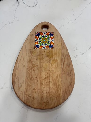 Made of 1 1/4” Canadian maple with some bird eye and Portuguese ceramic tile insert